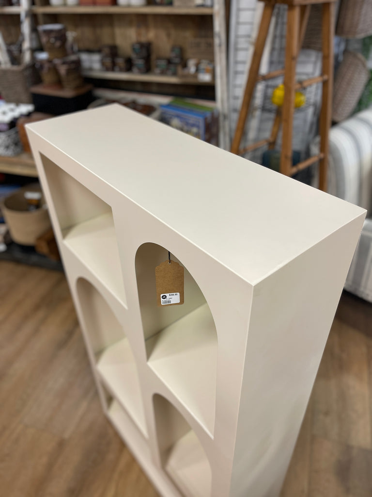 The cream storage shelving unit is made from durable iron for long-lasting use. It features a matte finish that adds a modern touch to any room with its sophisticated and sleek appearance and five spacious shelves, offering ample storage and display options for various items.