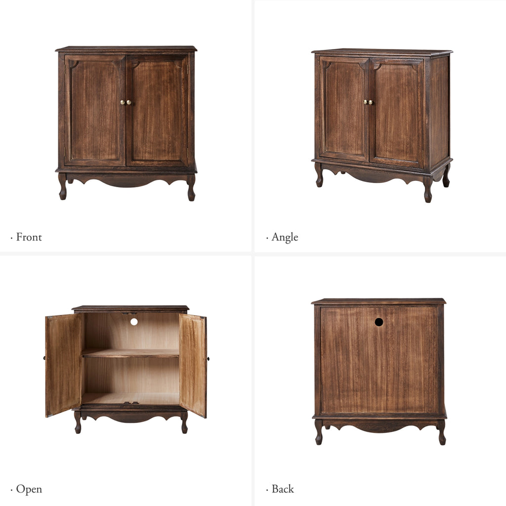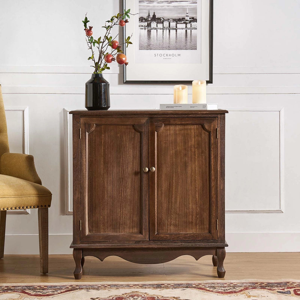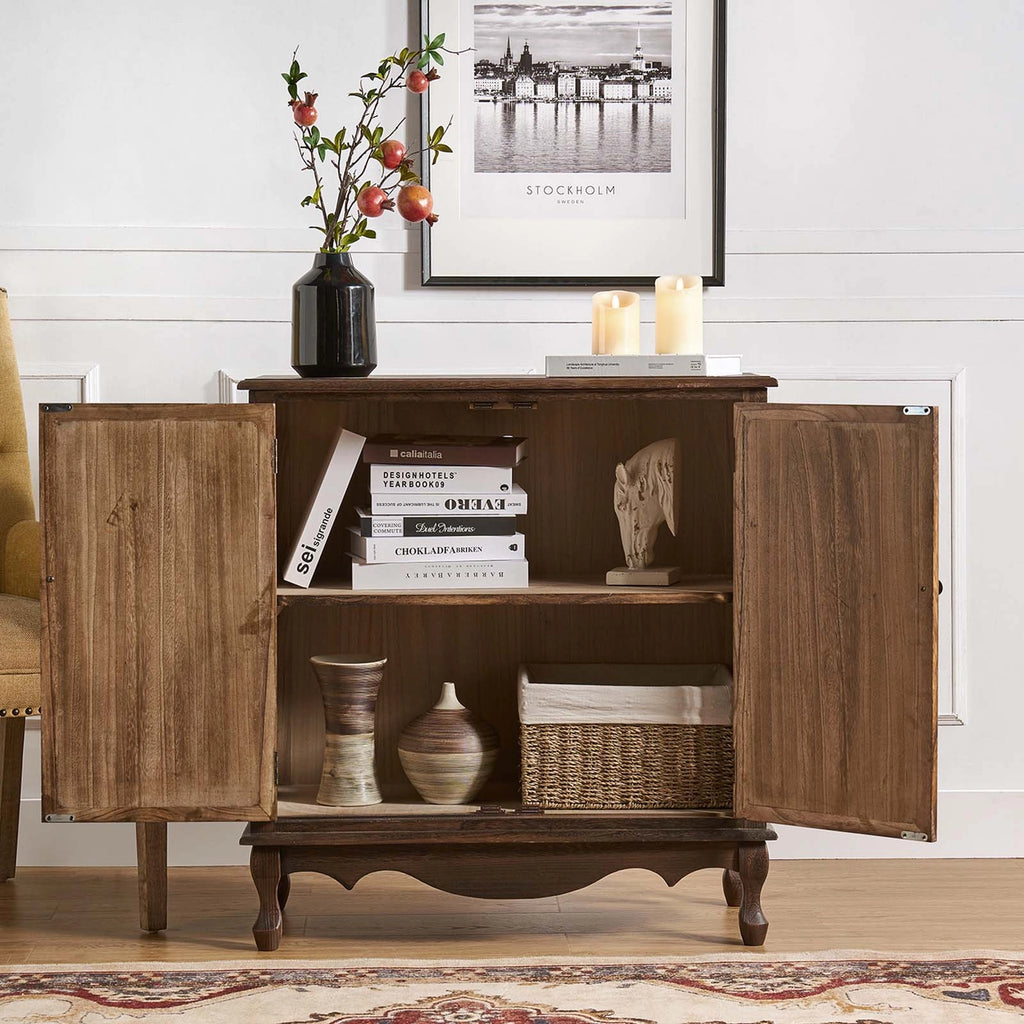 Immerse yourself in the enduring allure of this 2-door accent cabinet, a farmhouse-style cabinet that melds age-old tradition with contemporary functionality. Exuding an irresistible rustic charm, it serves as a portal to a bygone era while catering to present-day demands. The cabinet becomes an emblem of refined taste as its meticulously exquisitely carved embellishments evoke a sense of nostalgia. Plus, the adjustable legs promise flawless integration into different areas even on uneven surfaces, while the cable management system effortlessly tames the chaos of wires. A stroke of elegance, the metal knob beckons you to explore the ample storage within. Every aspect of this captivating accent cabinet unveils the allure of farmhouse living at its finest.